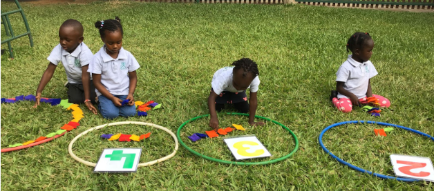 The teachers at Braeside Thika are aware that children learn equally with physical objects both indoors as well as outdoors. Through outdoor play, FS1 children have a significant opportunity to actively and joyously develop early numerical abilities. Jumping on hula hoops and matching the correct number of beanbags to numerals that were set on the ground, the children learnt counting and understanding simple number sequences in an enjoyable and practical way. They also improved their hand-eye coordination, physical strength, problem-solving skills, teamwork, social skills and confidence. Braeside Thika, a school where learners enjoy success !